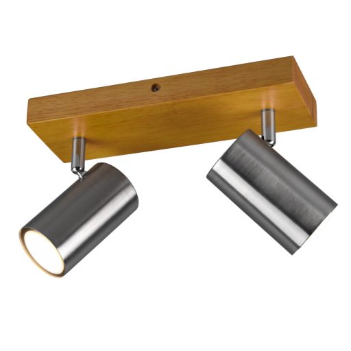 Fa vázas spot lámpa nikkel színű fém billenthető búrával, GU10-es foglalattal.