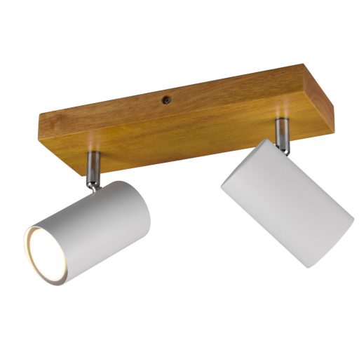 Fa vázas spot lámpa fehér színű fém billenthető búrával, GU10-es foglalattal.