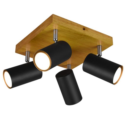 Fa vázas spot lámpa fekete színű fém billenthető búrával, GU10-es foglalattal.