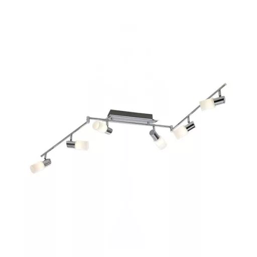 Súrolt alumínium és króm színú fém spot lámpa opálos üveg búrával, billenthető fejjel, beépíett meleg fehér színhőmérsékletű LED fényforrással.
