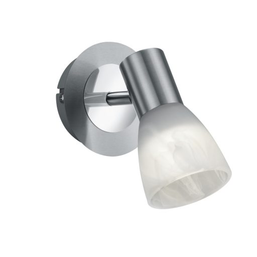Matt nikkel színű fém spot lámpa alabástrom üveg búrával, E14-es cserélhető LED fényforrással, billenthető fejjel.