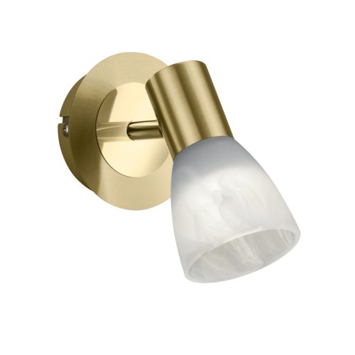 Matt sárgaréz színű fém spot lámpa alabástrom üveg búrával, E14-es cserélhető LED fényforrással, billenthető fejjel.