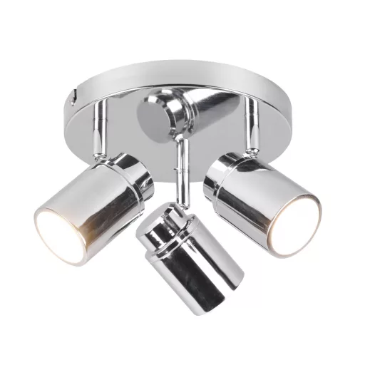 Króm színű fém fürdőszobai spot lámpa acryl betéttel, billenthető fejjel, GU10-es foglalattal, IP44-es védelemmel.