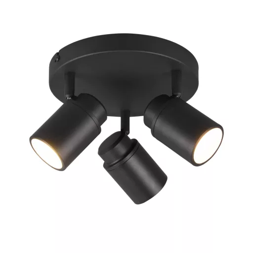Matt fekete színű fém fürdőszobai spot lámpa acryl betéttel, billenthető fejjel, GU10-es foglalattal, IP44-es védelemmel.