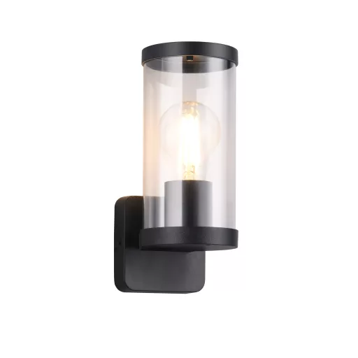 Matt fekete színű kültéri alumínium fali lámpa műanyag betétes búrával, E27-es foglalattal, IP44-es védelemmel.