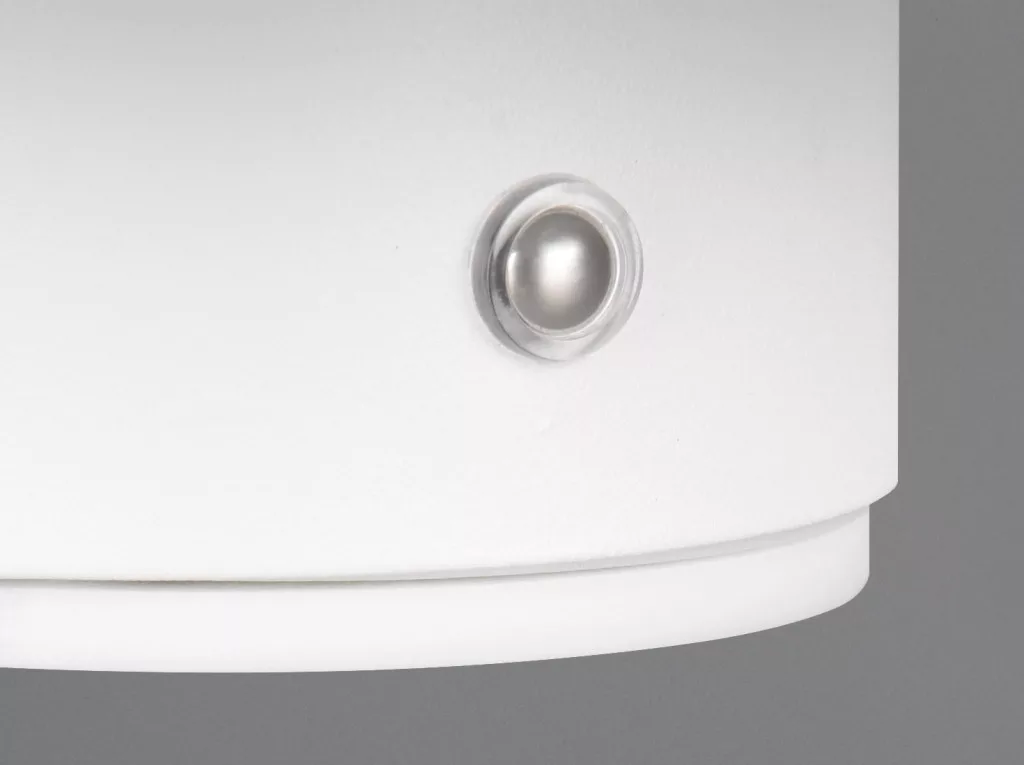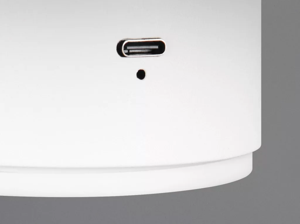 Matt fehér színű fém vázas, akkumulátors, indirekt, azaz a fal felé világító fali lámpa meleg fehér színhőmérsékletű beépített LED fényforrással. A lámpa fali elemét kell felrögzíteni fal felületre, amiről a lámpatest fel-levehtő, így könnyedén tölthető USB kábelen keresztül. A feltöltés 4-6 órát vesz igénybe, amivel 6-8 órán át képes világítani a lámpa. A lámpa kapcsolása és fényereje érintéssel szabályozható.