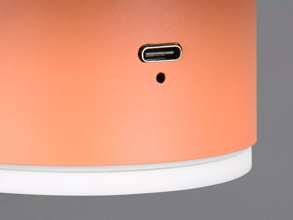 Barack színű fém vázas, akkumulátors, indirekt, azaz a fal felé világító fali lámpa meleg fehér színhőmérsékletű beépített LED fényforrással. A lámpa fali elemét kell felrögzíteni fal felületre, amiről a lámpatest fel-levehtő, így könnyedén tölthető USB kábelen keresztül. A feltöltés 4-6 órát vesz igénybe, amivel 6-8 órán át képes világítani a lámpa. A lámpa kapcsolása és fényereje érintéssel szabályozható.