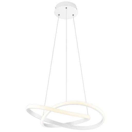 Fehér színű fém vázas függeszték lámpa fehér színű műanyag betétes búrával, beépített természetes fehér színhőmérsékletű LED fényforrással. A lámpa fényereje fali kapcsoló segítségével több lépcsőben szabályozható.