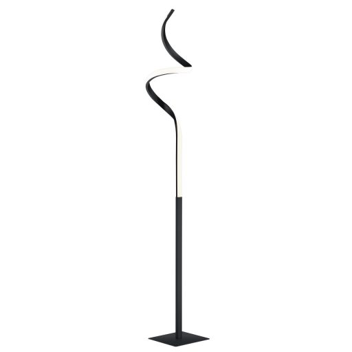 Matt fekete színű fém vázas álló lámpa fehér színű műanyag betétes búrával, beépített meleg fehér színhőmérsékletű LED fényforrással. A lámpa fényereje érintéssel szabályozható.