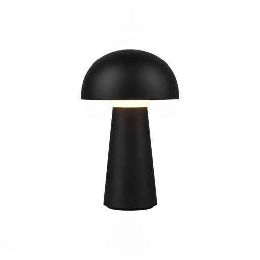 Fekete színű akkumulátoros műanyag kültéri asztali lámpa beépített meleg fehér színhőmérsékletű LED fényforrással, IP44-es védelemmel. A lámpa fényereje érnitéssel 3 lépcsőben szabályozható. Illetve az akkumulátor USB porton keresztül tölthető.