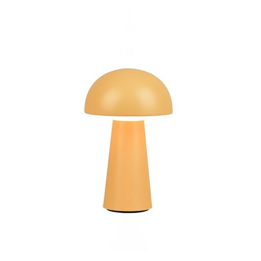 Sárga színű akkumulátoros műanyag kültéri asztali lámpa beépített meleg fehér színhőmérsékletű LED fényforrással, IP44-es védelemmel. A lámpa fényereje érnitéssel 3 lépcsőben szabályozható. Illetve az akkumulátor USB porton keresztül tölthető.