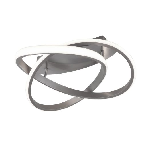 Matt nikkel színű fém vázas mennyezeti lámpa fehér színű műanyag betétes búrával, beépített meleg fehér színhőmérsékletű LED fényforrással. A lámpa fényereje fali kapcsoló segítségével több lépcsőben szabályozható.