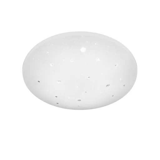 Műanyagból készült mennyezeti lámpa csillagos égbolt effektes búrával, beépített természetes fehér színhőmérsékletű LED fényforrással, IP44-es védelemmel. A lámpa fényereje fali kapcsoló segítségével több lépcsőben szabályozható.