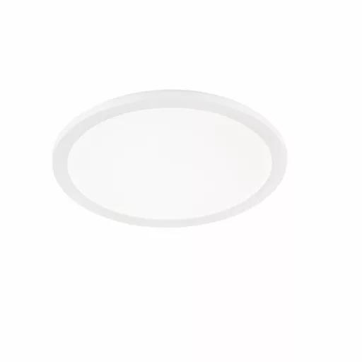 Fehér színű műanyag mennyezeti lámpa meleg fehér színhőmérsékletű beépített LED fényforrással, IP44-es védelemmel. A lámpa fényereje fali kapcsoló segítségével több lépcsőben szabályozható.