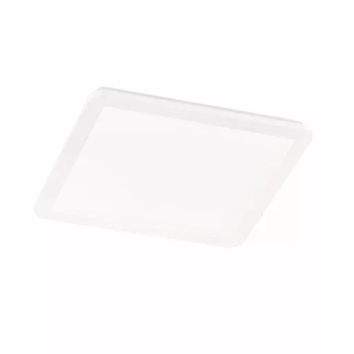 Fehér színű műanyag mennyezeti lámpa meleg fehér színhőmérsékletű beépített LED fényforrással, IP44-es védelemmel. A lámpa fényereje fali kapcsoló segítségével több lépcsőben szabályozható.