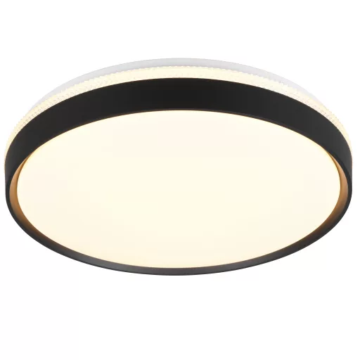 Fekete arany színű dekor keretes, fehér búrás, műanyag mennyezeti lámpa beépített LED fényforrással. A lámpához távirányító tartozik, mely segítségével állítható a LED fényereje, színhőmérséklete(2700-6500K), illetve a lámpa éjszakai fény funkcióval is rendelkezik.