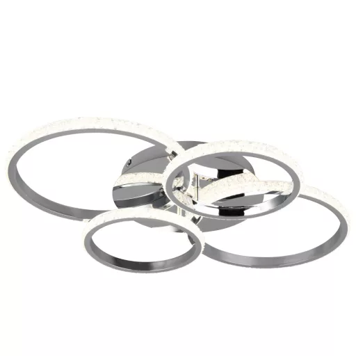 65,5x 49,5cm széles, króm színű fém vázas függeszték lámpa acryl kristály betétes búrával, beépített, természetes fehér színhőmérsékletű LED fényforrással. A lámpa fényereje fali kapcsoló fel/le kapcsolásával 25-50-100% között állítható.