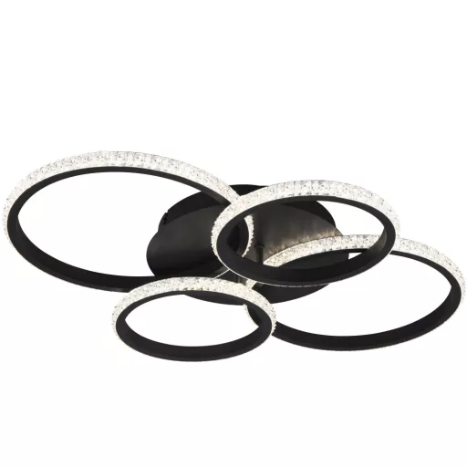 65,5x 49,5cm széles, fekete színű fém vázas függeszték lámpa acryl kristály betétes búrával, beépített, természetes fehér színhőmérsékletű LED fényforrással. A lámpa fényereje fali kapcsoló fel/le kapcsolásával 25-50-100% között állítható.