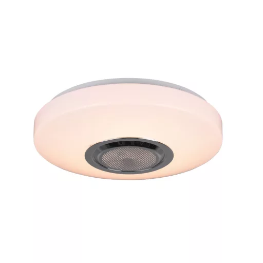 Műanyagból készült mennyezeti lámpa a búra közepén hangszóróval, beépített meleg fehér színhőmérsékletű LED fényforrással. A lámpához távirányító tartozik, mely segítségével állítható a LED fényereje, színe, illetve Bluetooth segítségével csatlakozhatunk a hangszóróra.