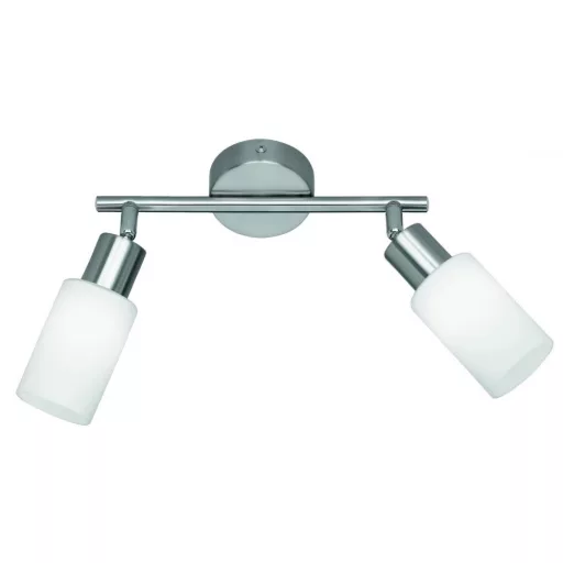 Matt nikkel színű fém spot lámpa fehér színű üveg búrával, billenthető fejjel, E14-es foglalattal.