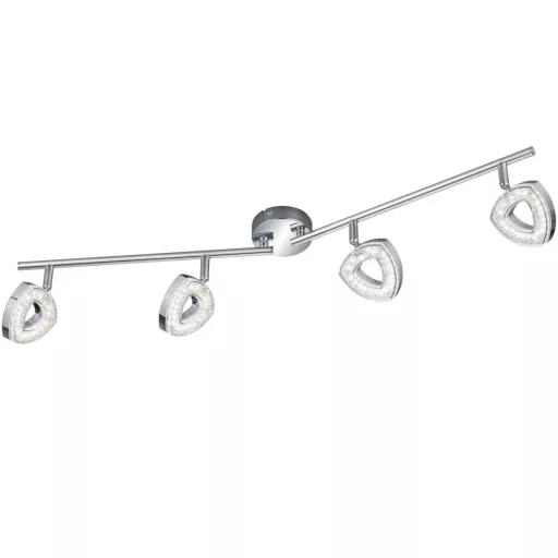 Króm színű fém spot lámpa kritályos acryl betéttel, billenthető fejjel, meleg fehér színhőmérsékletű beépített LED fényforrással.