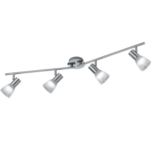 Matt nikkel színű fém spot lámpa alabástrom üveg búrával, billenthető fejjel, cserélhető, E14-es LED fényforrással.