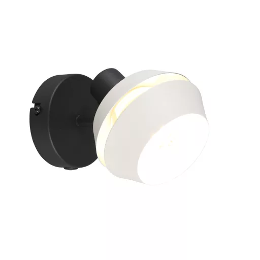 Matt fekete színű fém spot lámpa világos szürke búrával, billenthető fejjel, E14-es foglalattal. A lámpa hálózatba is köthető vagy dugvillás külső vezetékkel aljzatba csatlakoztatható.