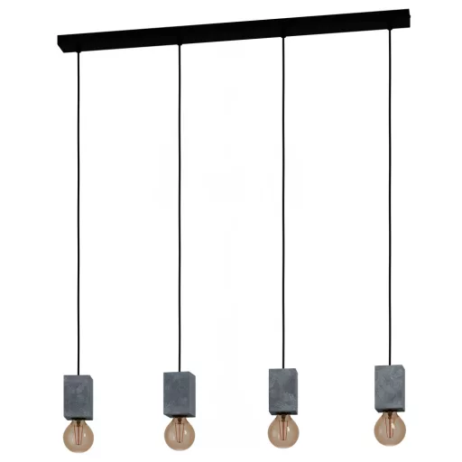 Loft stílusú, fekete színű fém és beton függeszték E27-es foglalattal. A lámpa dekor fényforrással mutat a legjobban, ami nem tartozék.