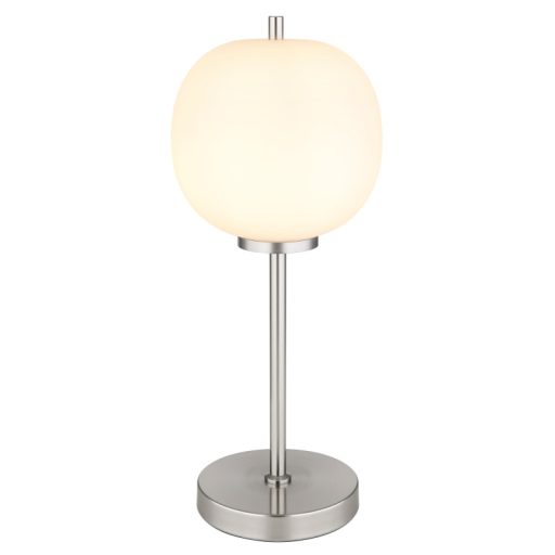 Asztali lámpa fém nikkel matt, üveg opál, billenőkapcsoló a kábelen, ø: 185mm, M:450mm, kábelhossz 1500mm, nem tartozék: 1x E14 40W 230V