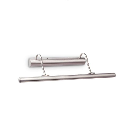 Nikkel színű fém vázas tükörvilágító lámpa opálos műanyag betéttel, 4db 3,2W 3000K cserélhető G9-es LED fényforrással. A búra billenthető, így a fény a kívánt helyre irányítható.