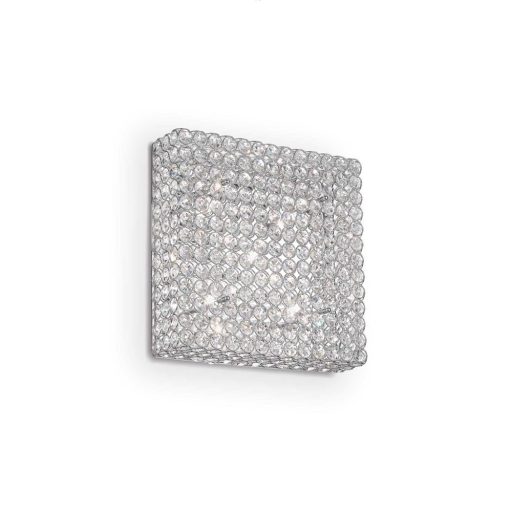 Króm színű fém vázas falra és mennyezetre egyaránt szerelhető lámpa fém gyűrűkbe foglalt kristály búrával, 6db 28W 2700K G9-es, cserélhető halogén fényforrással.