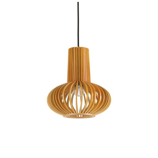 Natur fa függeszték gömbölyded alakú fa lamellás búrával, 1db E27-es foglalattal. A Citrus termékcsalád függesztékei többféle búrával elérhetőek. Ezek kombinálásaval egyedi kinézetet varázsolhat az adott helyiségnek. A lámpacsalád tagjainak megtekintéséhez kattintson a Citrus termékcsalád tajgai gombra.