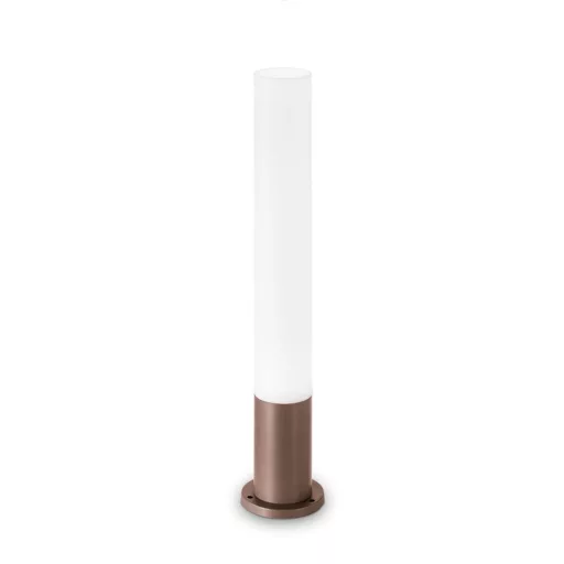 Kávé színű alumínium kültéri álló lámpa nagy méretű fehér színű polikarbonát búrával, IP44-es védelemmel, GX53-as foglalattal.