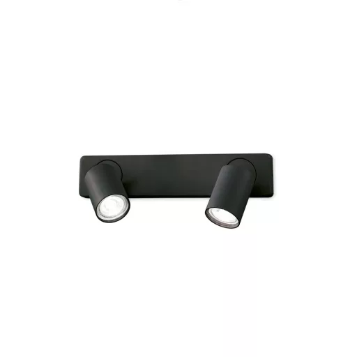 Fekete színű alumínium vázas fali lámpa állítható és forgatható fém fejekkel, 2db 5W 3000K GU10-es cserélhető LED fényforrással.