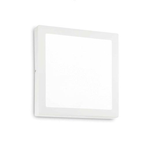 Fehér színű fém keretes falra és mennyezetre egyaránt szerelhető lámpa fehér színű műanyag betétes búrával, beépített meleg fehér fényű LED fényforrással.