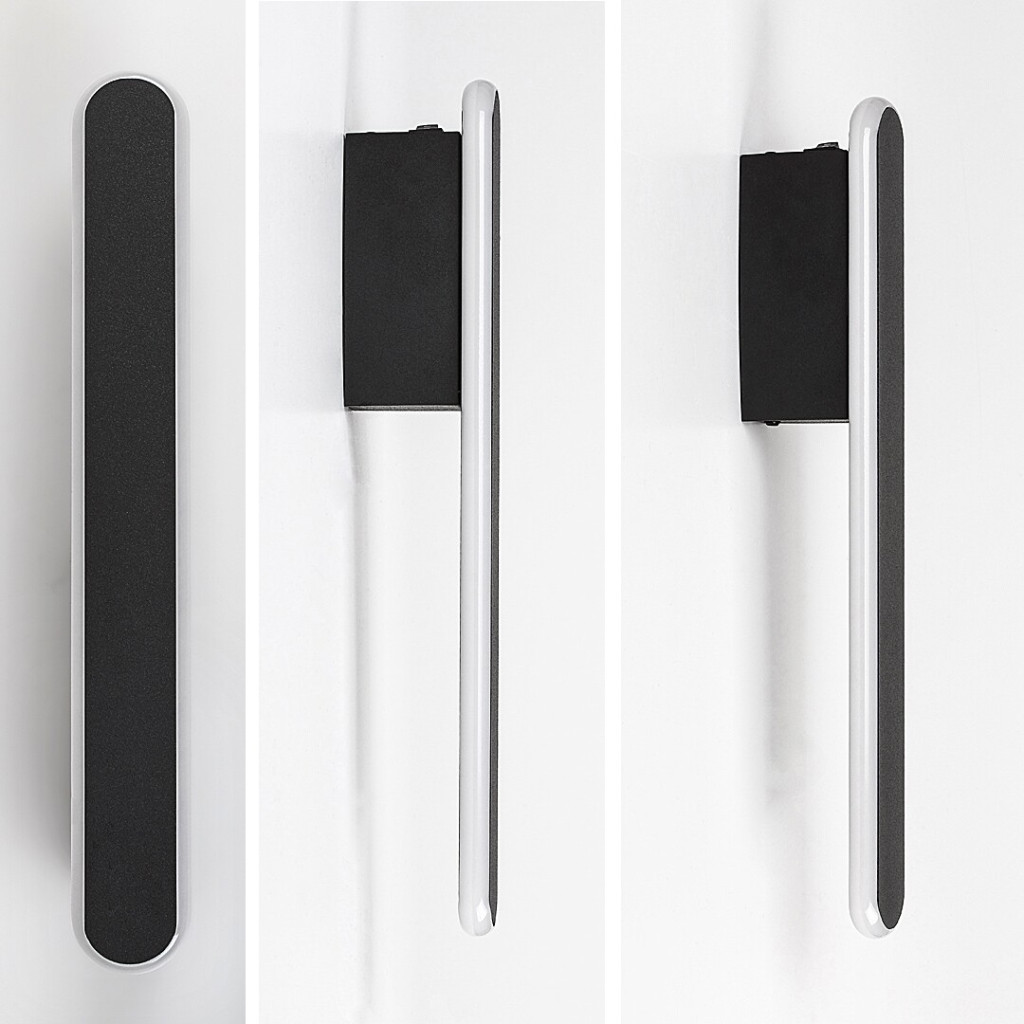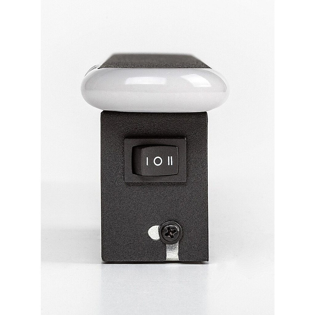 Fekete színű fém vázas fali lámpa fehér színű műanyag betéttel, beépített LED fényforrással. A lámpa színhőmérséklete a mennyezeti elem oldalán lévő kapcsoló segítségével állítható 3000/4000K-re, azaz meleg/természetes fehér színhőmérsékletre.
