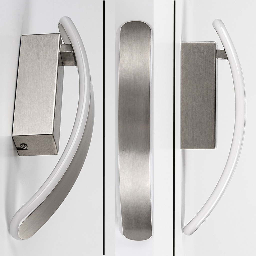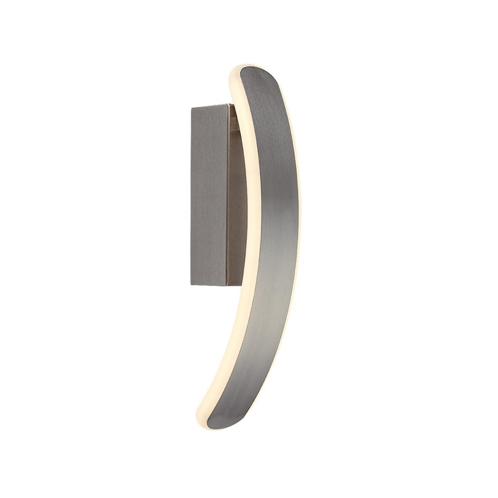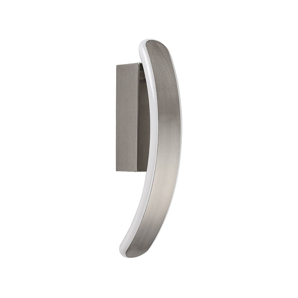 Szatén króm színű fém vázas fali lámpa fehér színű műanyag betéttel, meleg fehér színhőmérsékletű beépített LED fényforrással.