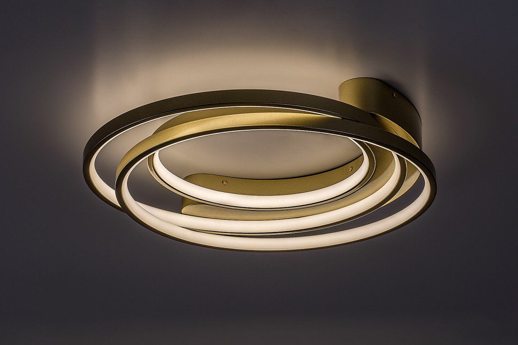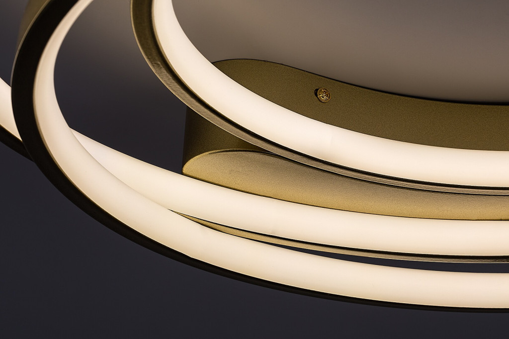 Arany színű fém mennyezeti lámpa fehér szilikon betétes búrával, természetes fehér színhőmérsékletű beépített LED fényforrással.