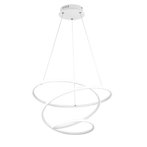 Fehér színű fém vázas függeszték fehér színű fém és műanyag búrával, természetes fehér színhőmérsékletű beépített LED fényforrással. A lámpa egyéb jellemző(i): fényerőszabályzós. A lámpa fényereje fali kapcsoló segítségével 3 lépcsőben(100%, 50%, 25%) szabályozható.