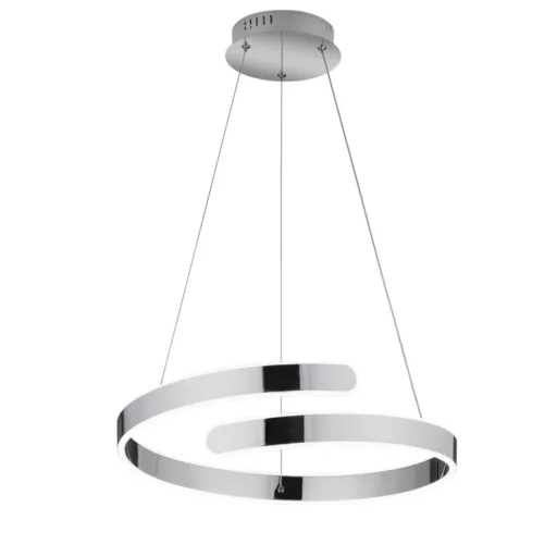 Króm színű fém vázas függeszték króm-fehér színű fém és műanyag búrával, természetes fehér színhőmérsékletű beépített LED fényforrással. A lámpa egyéb jellemző(i): fényerőszabályzós. A lámpa fényereje fali kapcsoló segítségével 3 lépcsőben(100%, 50%, 25%) szabályozható.
