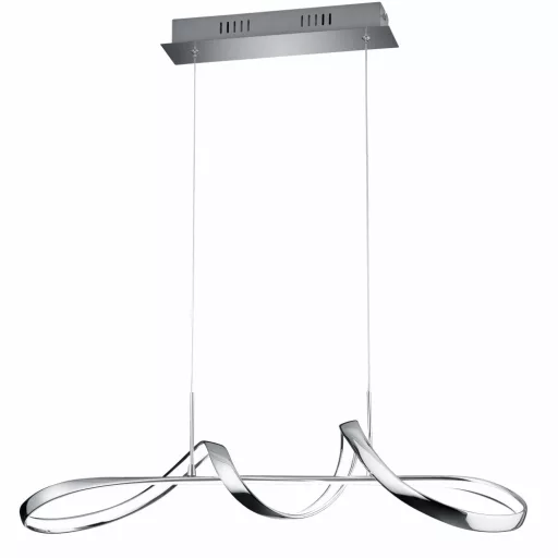 Króm színű fém vázas függeszték króm-fehér színű fém és műanyag búrával, természetes fehér színhőmérsékletű beépített LED fényforrással. A lámpa egyéb jellemző(i): fényerőszabályzós. A lámpa fényereje fali kapcsoló segítségével 3 lépcsőben(100%, 50%, 25%) szabályozható.