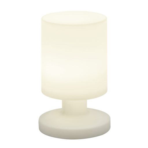 Fehér színű műanyag kültéri dekorációs lámpa beépített meleg fehér színhőmérsékletű LED fényforrással, IP44-es védelemmel. A lámpa akkumulátorral üzemel, így nincs helyhez kötve. Egy töltés 5 órát vesz igénybe és a lámpa 8 órán keresztül tud világítani teljes töltéssel.