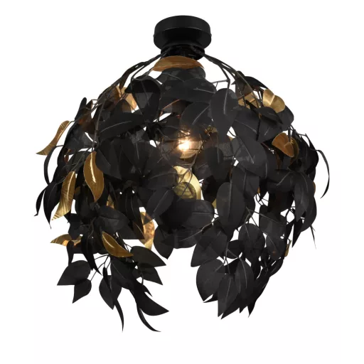 Fekete színű fém vázas egyéb mennyezeti lámpa fekete-arany színű műanyag búrával, E27-es foglalattal.