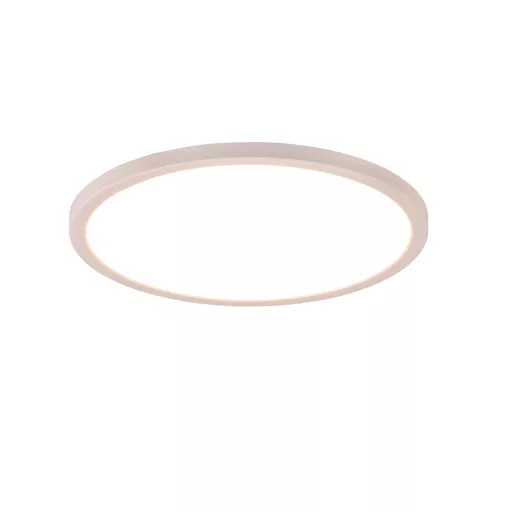 Fehér színű műanyag vázas kerek mennyezeti lámpa fehér színű műanyag búrával, 3000-6500K között változtatható színhőmérsékletű beépített LED fényforrással. A lámpa egyéb jellemző(i): távirányítóval, fényerőszabályzós, színhőmérséklet szabályzóval, éjszakai fény funkcióval, színváltóval. A lámpa a mennyezet felé, azaz indirekt is világít. Az indirekt világító rész képes színváltásra.