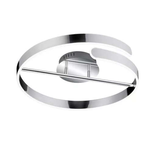 Króm színű fém vázas kerek mennyezeti lámpa króm-fehér színű fém és műanyag búrával, természetes fehér színhőmérsékletű beépített LED fényforrással. A lámpa egyéb jellemző(i): fényerőszabályzós. A lámpa fényereje fali kapcsoló segítségével 3 lépcsőben(100%, 50%, 25%) szabályozható.