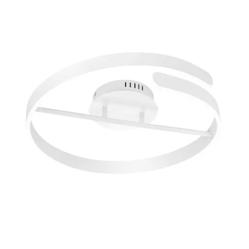 Fehér színű fém vázas kerek mennyezeti lámpa fehér színű fém és műanyag búrával, természetes fehér színhőmérsékletű beépített LED fényforrással. A lámpa egyéb jellemző(i): fényerőszabályzós. A lámpa fényereje fali kapcsoló segítségével 3 lépcsőben(100%, 50%, 25%) szabályozható.