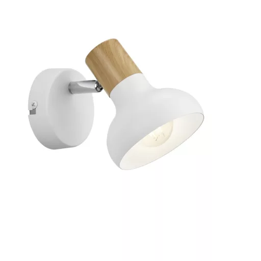 Fehér színű fém vázas fali spot lámpa fehér-barna színű fém búrával, E14-es foglalattal. A lámpa egyéb jellemző(i): állítható fejű lámpa.