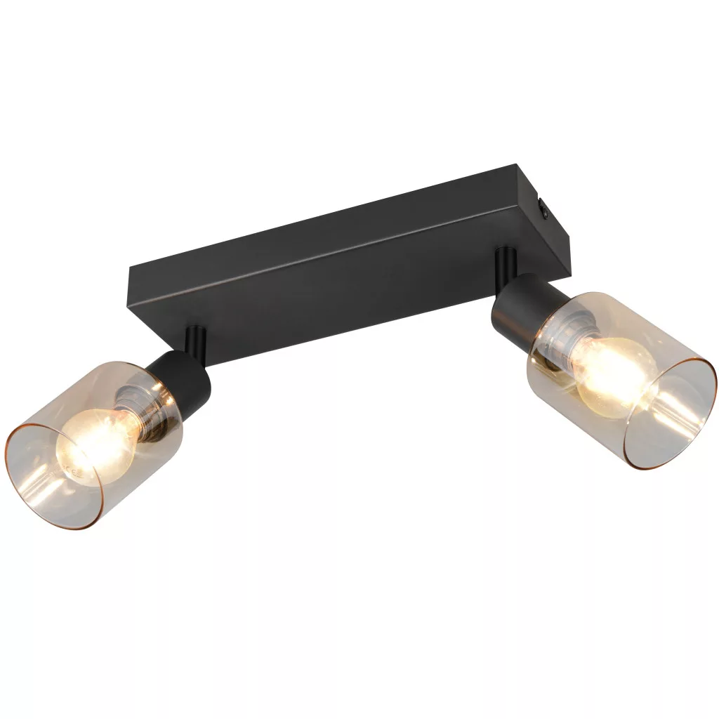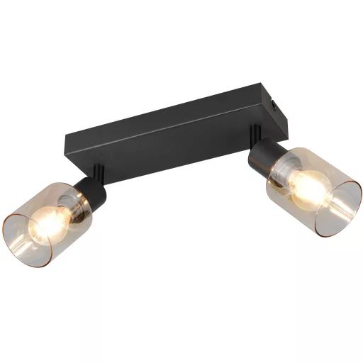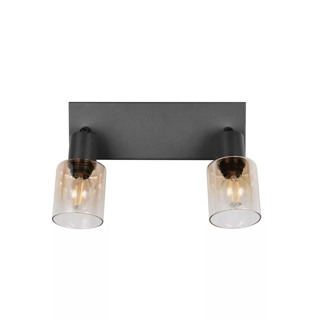 Matt fekete színű fém spot lámpa billenthető fejjel, borostyán színű üveg búrával, E14-es foglalattal.